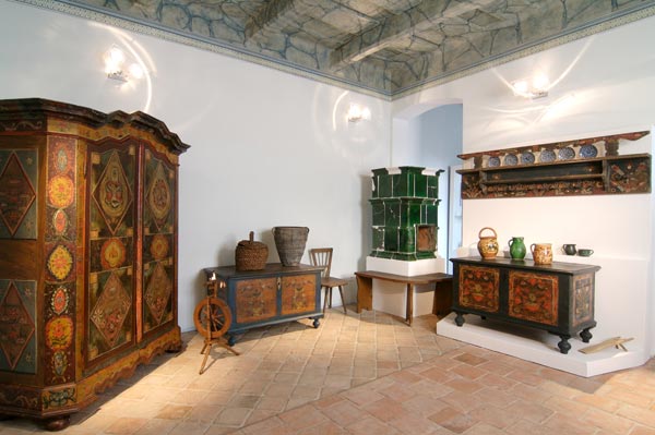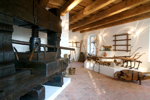 Nová expozice muzea je rozdělena do šesti stálých výstavních celků. V úvodní části uvidíme selský malovaný nábytek z poloviny 19. století a atmosféru expozice dotváří dochovaný malovaný trámový strop ukončený fabionem s malovanou římsou. Další části expozice se věnují zaniklým vesnickým řemeslům. Najdeme zde soubory nástrojů z kolářských, kovářských a bednářských dílen. Tradičnímu zemědělství a vinohradnictví je věnována značná část výstavní expozice. Můžeme zde shlédnout dříve běžně užívané zemědělské nářadí, jako jsou pluhy, dřevěné harky a brány, ale největší pozornost upoutá šroubový vinný lis z roku 1805.