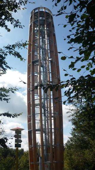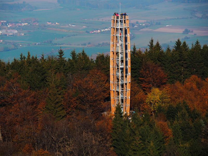 Vyhlídková věž se 156 schody je vysoká 35 m, skládá se z centrálního ocelového sloupu s vřetenovým schodištěm a dvanácti ohýbaných modřínových lamel, které tvoří obvod rozhledny. Půdorys rozhledny tak připomíná hodinový ciferník a dvanáct vyhlídkových plošin rovnoměrně rozmístěných připomíná sluneční hodiny. Výška horní vyhlídkové plošiny je 30 m. Na stavbu bylo použito 29 tun dřeva a 24 tun oceli. Autory rozhledny jsou Ing. Arch. Marta Balážiková a Ing. Ondrej Balážik.