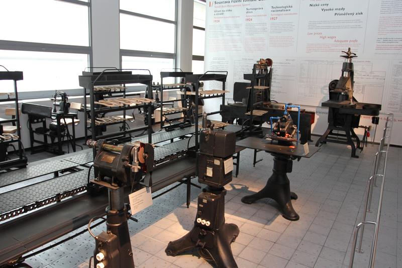 V části tovární výrobní linky na výrobu obuvi jsou některé stroje dokonce funkční stejně jako vystavená letadla - první bezmotorové letadlo vyrobené ve Zlíně (ZLIN I) a nejslavnější výrobek, motorové letadlo ZLIN XII. Mezi exponáty tovární výrobní linky patří mechanická sekačka, štípací stroj, napínací hřebík, přibíječ stélek nebo šestnáct metrů dlouhý pás podobný tomu, na kterém se posunovaly části bot v Baťových dílnách. Ve skleněných vitrinách jsou vystavené střevíce. Kromě kusů známých z obuvnického muzea k nim přibyly i některé nové. Třeba vzácný exemplář orientální obuvi - je vyšívaný zlaceným dracounem, má mohutnou několikavrstevnou podešev a je to opravdový unikát. Muzeum koupilo střevíc za deset tisíc korun v dražbě v Mnichově. Ve 12 velkých skleněných válcích o průměru 70 centimetrů jsou vystaveny baťovské boty od počátku firmy až po konec 2. světové války. Celkem je vystaveno na šest set párů historických bot.