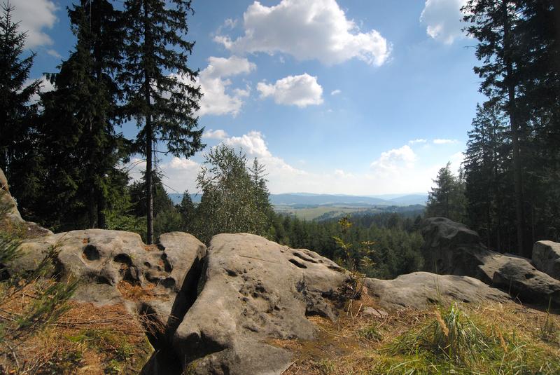 Horní skála - dosahuje výšky 10 m a je značně členitá.